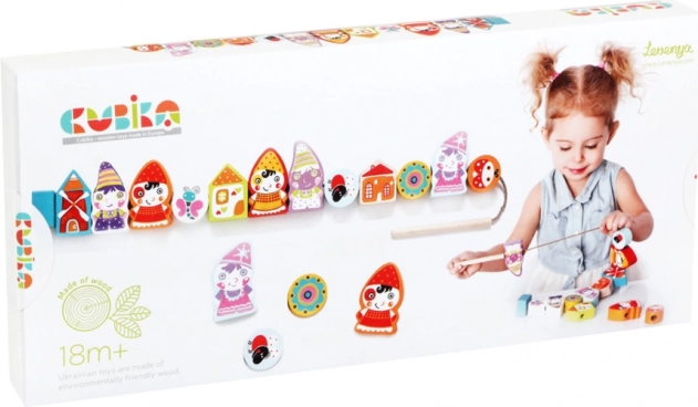 CUBIKA snøresæt til udvikling af motorik og kreativitet med trædværge. Sikkert, miljøvenligt og certificeret legetøj.