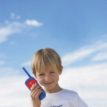 Walkie-talkierne har brugervenlige knapper, aftagelige bælteclips og passer til små hænder. Takket være den robuste, børnetilpassede konstruktion er de perfekte til udendørs lege, lejre og familieudflugter. Strømforsyning med almindeligt tilgængelige AAA-batterier.