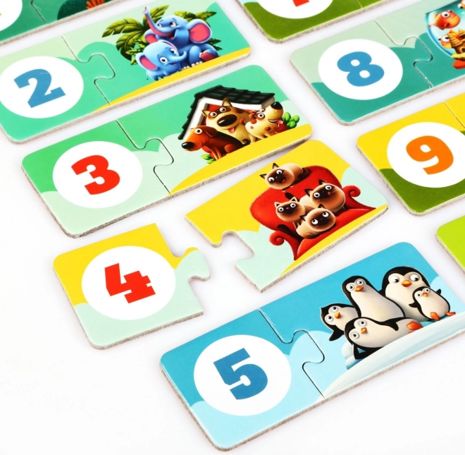 Pædagogisk børnepuslespil – matchning (dyr og tal)