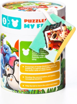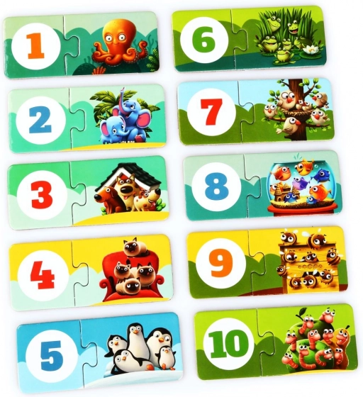 Oplev legende læring med PUZZLIKA-puslespillet, som guider børn gennem deres første skridt i tallenes verden. Hvert par forbinder en illustration af en gruppe dyr med det tilsvarende ciffer, hvilket naturligt udvikler tælling fra 1 til 10, visuel perception og forståelse af sammenhænge. De store, solide brikker er lette for børn at gribe og samle.