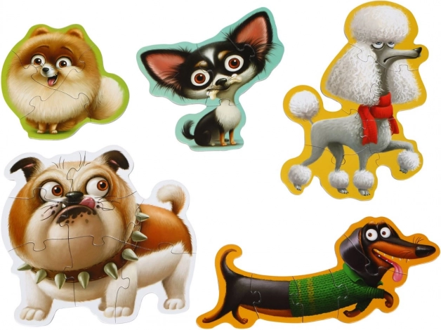 puzzlika hunde 5 i 1 – børnebillede-puslespil 27 brikker