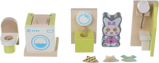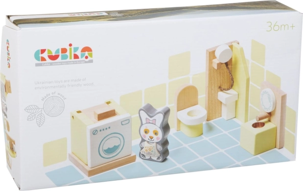 Dukkemøbelsættet i træ “Badeværelse” er et ideelt valg til udvikling af sansemotoriske færdigheder og børns kreativitet. Dette 8-delte sæt indeholder: