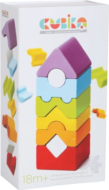 Med dette Tårn XII bygge-legetøj fra CUBIKA har børn det ikke kun sjovt, men lærer også noget. Hver del er omhyggeligt fremstillet af den fineste ahorn og bøg med hensyn til børns sikkerhed. Tårnet består af komponenter, der skal samles korrekt for at skabe en fuldstændig 11 cm høj struktur. Legetøjet støtter: