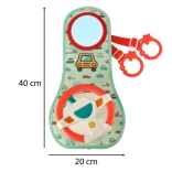 Dette interaktive bilrat er designet til at underholde dit barn under rejsen. Det inkluderer et farverigt panel med rat og et sikkert spejl. Det har fire knapper og en sensorisk håndtag, som tilbyder lyde og farverige lys, der stimulerer børns fantasi og sanseindtryk.