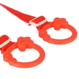 Legetøjet fastgøres let til bagsiden af sædet ved hjælp af plastikringe, som sikrer stabilitet og sikkerhed.