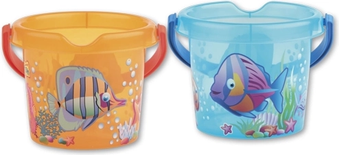Gennemsigtig børnespand fra Androni til sand, diameter 13 cm, let og holdbar. Kvalitetsrig italiensk produktion, egnet fra 12 måneder. Ideel til strand og sandkasse.