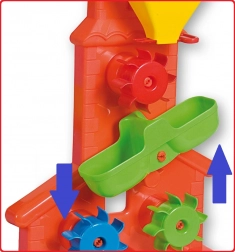 Se hvordan de farverige hjul sættes i gang, og hvordan renden deler strømmen. Legen understøtter sanseopfattelse og logisk tænkning.