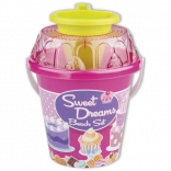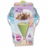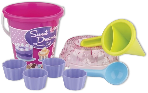 Dette mellemstore Androni sandsæt rummer alt, hvad der skal til for kreativ leg i sandkassen og ved vandet. Dekoreringstragten gør det muligt for børn at kombinere sand og vand og skabe originale “muffins” og andre kreationer, mens formene i kageform og det gennemsigtige kagesigte stimulerer fantasi og finmotorik.