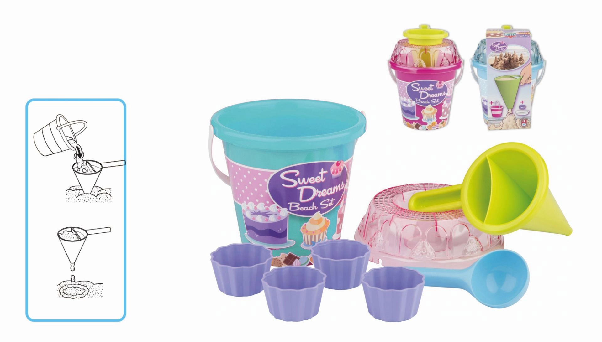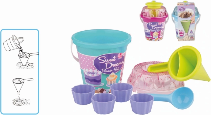 Dette mellemstore sandlegesæt fra Androni giver børn timevis af sjov og understøtter både fantasi og finmotorik. Takket være den specielle tragt kan små skabere blande sand med vand og lave originale “muffins” og andre sandlækkerier. Den lette og holdbare konstruktion i kvalitetsplast er ideel til haven, sandkassen og stranden.