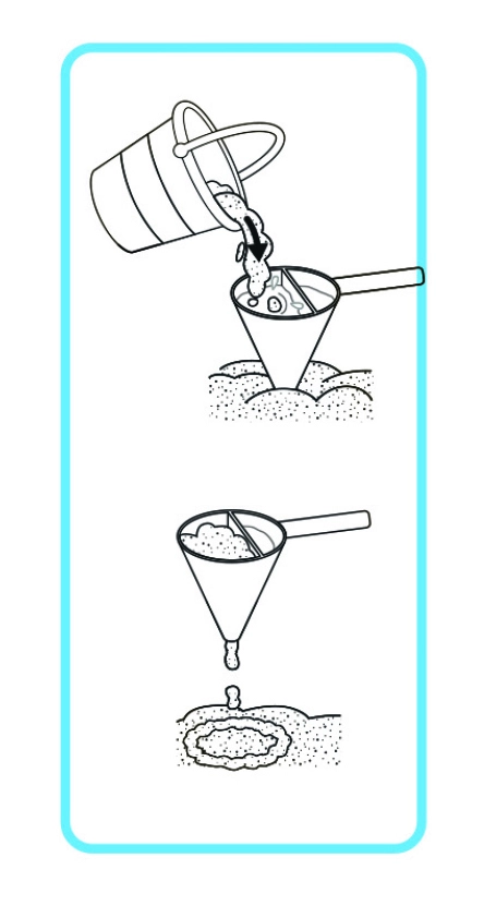 - Speciel tragt til kreativ blanding af sand og vand