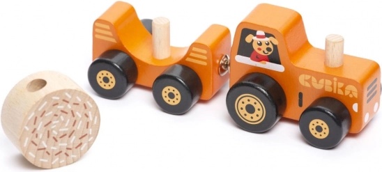 Sød trætraktor med trailer fra CUBIKA er et magnetisk puslespil i 3 dele, som gør det nemt for børn at samle de enkelte dele. Den er lavet af kvalitets ahorn- og bøgetræ og malet med sikre vandbaserede farver. Udvikler finmotorik, logisk tænkning og kreativitet på en fremragende måde. Anbefales fra 3 år.
