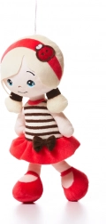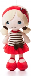 Plysdukken Levenya Anette imponerer med et blidt udtryk, blonde fletninger og et festligt outfit med røde detaljer. Takket være den lave vægt og den kompakte størrelse på 30 cm ligger den godt i små hænder og er en perfekt ven til leg og indsovning.