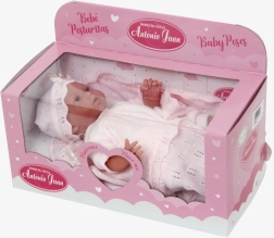 Babydukken fra det velrenommerede spanske mærke Antonio Juan er kendt for sit realistiske udseende og muligheden for leddenes bevægelse, som enhver lille forælder vil værdsætte. Hovedet og lemmerne er lavet af blødgjort vinyl, mens kroppen er af kvalitets blødt tekstil. Dukketøjet er af økologisk bomuld, der er dyrket uden kemisk behandling.
