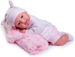 Den bløde stofkrop på dukken giver en behagelig legeoplevelse og sikrer komfort og realistisk håndtering.
