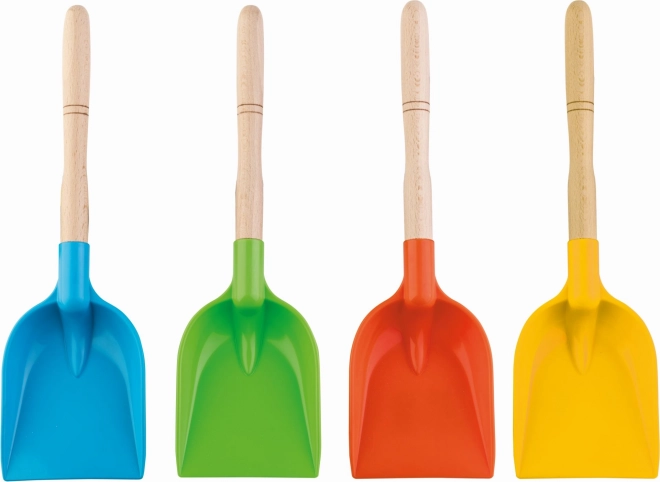 Praktisk børneskovl med træskaft og slidstærkt plastblad – ideel til sand og have. Let, sikker og fremstillet i Italien af kvalitetsmaterialer, klar til daglig leg også i vuggestuer og børnehaver.