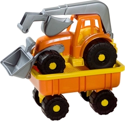 Denne traktorfrontlæsser med trailer udmærker sig ved høj kvalitet fra mærket ANDRONI GIOCATTOLI. Takket være de stærke og samtidig fleksible plastmaterialer tåler den høj belastning og er velegnet både til leg derhjemme og i børnehaver. Den samlede længde med tilkoblet trailer er 58 cm, hvilket giver børn masser af plads til kreativ leg på byggepladsen og i sandkassen.