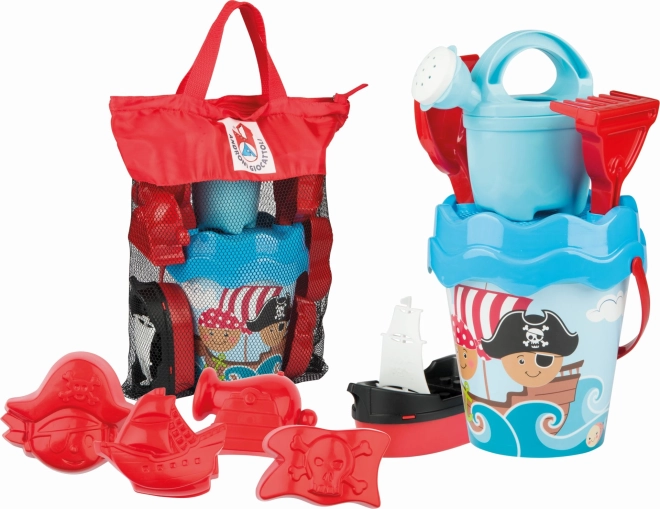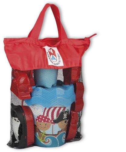 Oplev sjov på stranden og legepladsen med det 10‑delte ANDRONI sandsæt med pirattema i en praktisk netrejsetaske. Sættet rummer alt til kreativ leg – spand, si, vandkande, værktøj, båd og forme. Fremstillet i Italien af kvalitetsplast, som er robust og fleksibel, der tåler daglig brug og er egnet til børnehaver. Ideelt til børn fra 12 måneder.