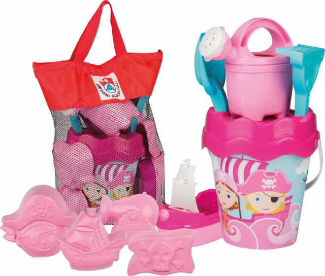 - Spand (Ø 17 cm), si, vandkande 0,5 l, skovl, rive, piratskib, 4 forme