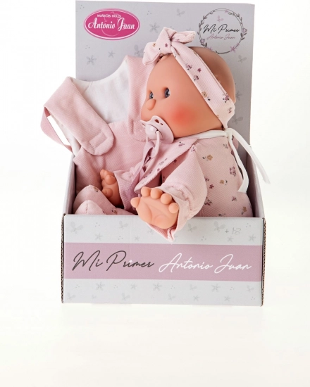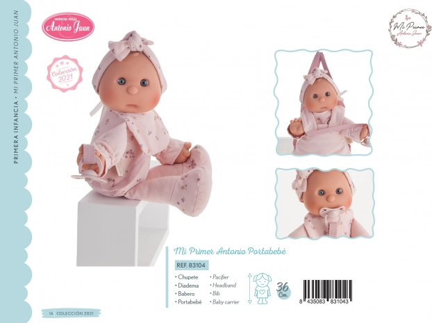Den søde dukke fra Antonio Juan er ideel som den første dukke til småbørn. Den har et blødt stofkrop, realistisk hoved og lemmer af blødgjort vinyl, og der medfølger en magnetisk sut. Udvalgt tøj er lavet af økologisk bomuld, og alt er pakket i en gaveæske. Størrelse 36 cm, anbefales fra 18 måneder.