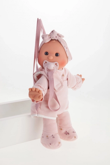 Denne håndlavede spanske dukke begejstrer med sin blidhed, kvalitet og fokus på børns sikkerhed. Den bløde stofkrop er dejlig at kramme, og hoved samt lemmer af kvalitets blødgjort vinyl virker realistiske og er lette at vedligeholde. Takket være den magnetiske sut kan børn lege mange autentiske lege.