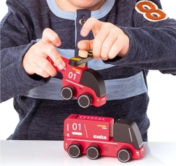 Giv børnene kreativ leg med træsættet CUBIKA brandmænd. Sættet består af en brandbil og en helikopter fremstillet af førsteklasses løn- og bøgetræ, lakeret med vandbaserede, lugtfrie farver. Takket være de afrundede kanter og den omhyggelige finish ligger de godt i små hænder og støtter sensomotorik, logisk tænkning og kreativitet.