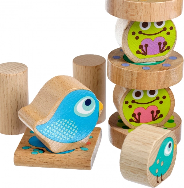 Opdag et sjovt træ-balancespil for børn med frøer, fugle og sommerfugle. Sættet indeholder 33 dele og dobbeltsidede skabelonkort, som udvikler finmotorik, øje–hånd-koordination, tålmodighed og kreativitet. De træklodser af høj kvalitet med afrundede kanter er sikre for små hænder og kan opbevares i en praktisk linnedpose til rejsen.