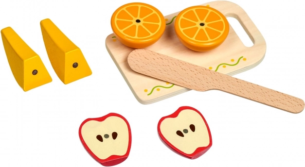 De enkelte dele holdes sammen af magneter, så børn sikkert kan “skære” dem og samle dem igen. Perfekt til træning af motorik og realistisk leg.