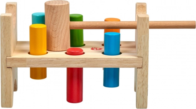 Når alle pinde er banket i, vender du blot bænken og starter forfra – endeløs underholdning, der styrker tålmodighed, koncentration og en sund udvikling af motoriske færdigheder.
