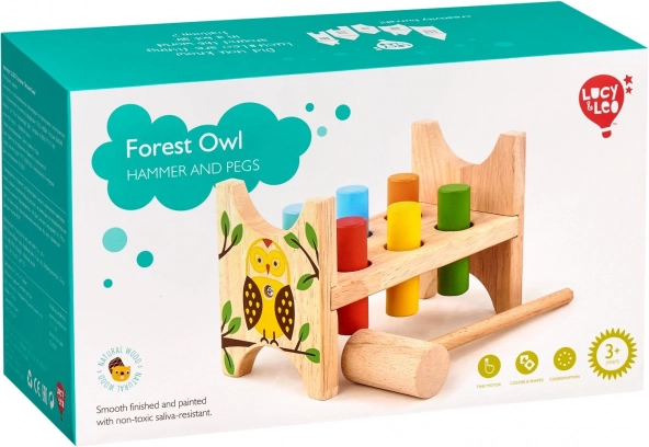 Denne kvalitetsbankebænk i træ med skovugle-motiv er det ideelle legetøj til børn, der elsker aktiv og meningsfuld leg. Seks farvede pinde og en træhammer hjælper børn med at træne præcision, styrke og rytme i slaget.