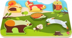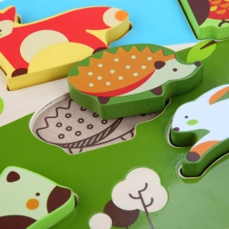Den glatte og solide plade med skovillustrationer hjælper børn med korrekt parring, mens de store og tydelige former støtter øje–hånd-koordination og rumlig orientering. Den enkle opstilling af motiverne fastholder opmærksomheden og styrker selvtilliden ved succesfuld lægning.