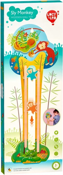 Det underholdende trælegetøj til væggen Lucy & Leo Smarte aber giver børn glæde ved bevægelse og læring. To farverige aber glider hurtigt ned, når de sættes i gang fra toppen af “stammerne”, laver kolbøtter og drejer rundt på banen. Understøtter finmotorik, øje–hånd-koordination og naturlig nysgerrighed. Nem montering på væggen, monteringsdele medfølger.