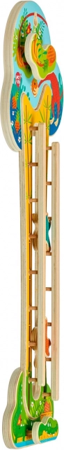 Oplev et smart og fængende legetøj med et friskt junglemotiv, der underholder børn i lange stunder. Når det hænges på væggen, sparer det plads på børneværelset og skaber en attraktiv legezone. To træaber bevæger sig ned ad en dobbelt bane, laver kolbøtter og drejer rundt, så hver tur er sjov og anderledes.