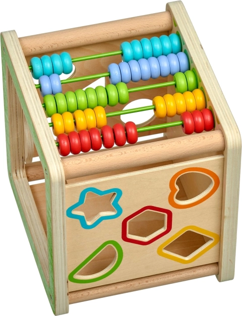 Indsættelse af geometriske former udvikler logik og formgenkendelse, mens kuglerammen understøtter de første regnefærdigheder og arbejde med farver.