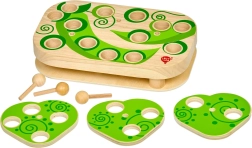 Takket være 9 udskiftelige skabeloner og roterende blade kan sværhedsgraden tilpasses barnets alder og færdigheder. Spillet er overfladebehandlet med sikre, non-toksiske farver, der er spytresistente, og de mindre dele kan nemt opbevares i en linnedpose.
