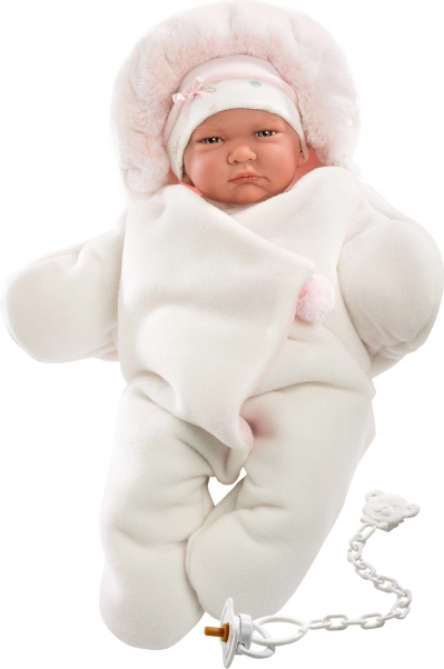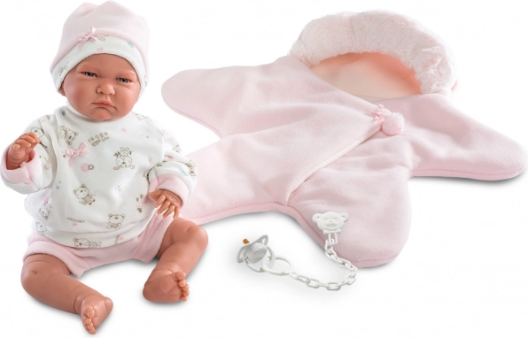 Forkæl din dukke med ekstra komfort og stil med dette 3-delte Llorens-sæt. Sættets hovedattraktion er den vendbare fleeceheldragt i stjerneform, som er superblød, varm og perfekt til både hygge og vinterture med dukken. Takket være den universelle størrelse passer den perfekt til NEW BORN-dukker på 40–42 cm.