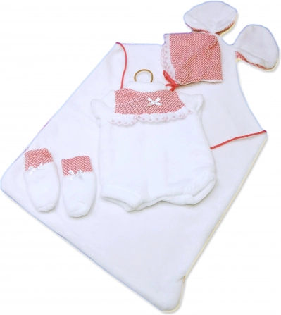 Sættet indeholder et 3-delt sæt og en dekorativ måtte med ører for endnu mere sjov ved pasning af dukken. Pakket i en plastikpose med plast- eller papbøjle – nem opbevaring og gavegivning.