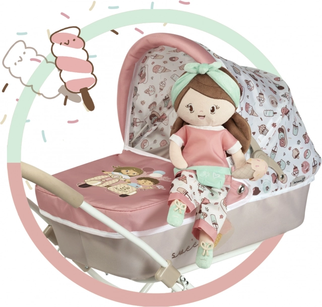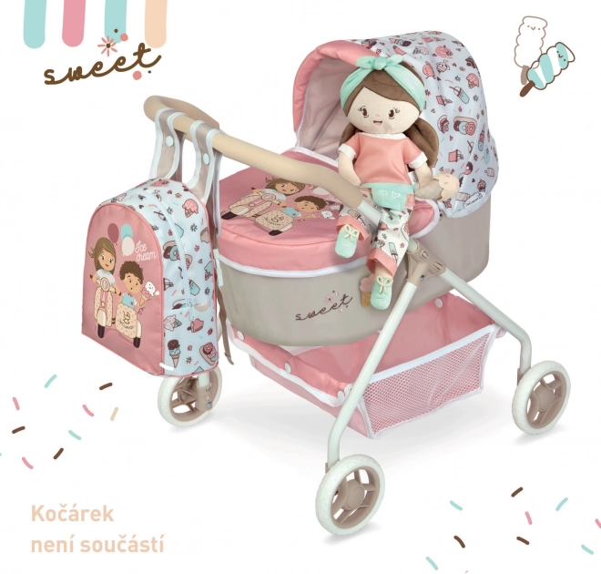 Plysdukken Sweet hører til en populær kollektion med legesyge motiver af kager og is. Takket være den bløde krop er den sikker og egnet også til tremmesengen. Den lave vægt og de kompakte mål gør den til en perfekt ledsager både på farten og derhjemme.