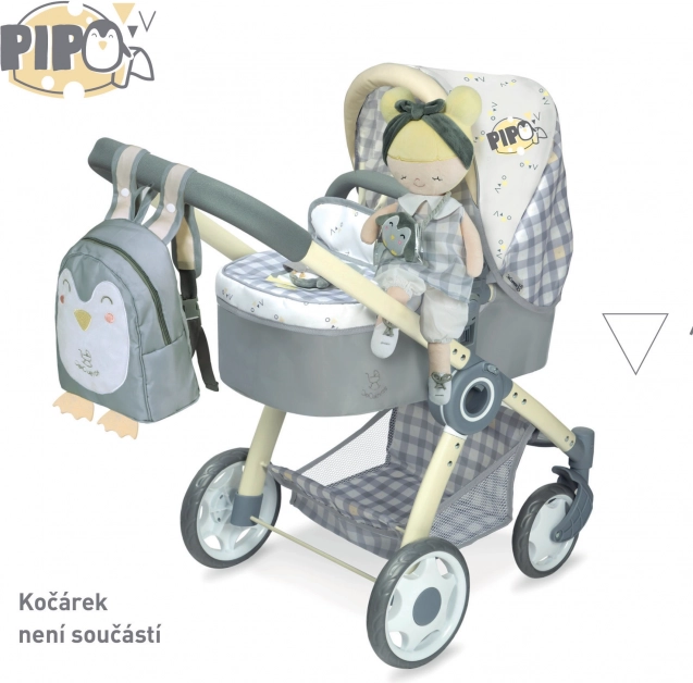 Dukken Pipo er en del af den fantastiske kollektion fra 2022, som du vil elske. Denne kollektion inkluderer barnevogne, dukkehuse og andre tilbehør til små husholdere. Det karakteristiske design med grå og hvide tern samt blødt gult tilbehør med pingvinmotiv vil opfylde enhver lille prinsesses forventninger.