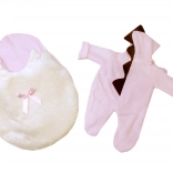 Fleece-poserne gengiver et dinosauræg og er ideelle til at holde dukken varm og komfortabel.