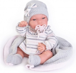 Denne realistiske dukke efterligner udseendet af en ægte nyfødt baby – fra blide folder til detaljerede ansigtstræk. Den fulde konstruktion i blødgjort vinyl er behagelig at røre ved, let at vedligeholde og giver børn mulighed for på legende vis at udvikle empati og omsorgsevner.