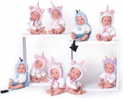 Denne realistiske babydukke i et sødt enhjørninge-outfit er fremstillet af en særlig blødgjort vinyl, som er meget behagelig at røre ved og slidstærk til daglig leg. Detaljeret gengivelse af babyfolder og proportioner inklusive køn giver rollelegen som forældre naturlighed. Den fulde vinylkonstruktion gør det muligt at bade dukken uden bekymringer, hvilket udvider legemulighederne.