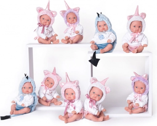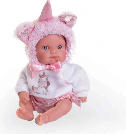 Realistisk dukke ANTONIO JUAN Enhjørning lyserød, 21 cm. Fuldvinylkrop, mulighed for bad, økologisk tøj. Ideel gave til børn fra 3 år.