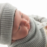 Denne dukke har en blød stoffkrop, mens hovedet og lemmerne er lavet af høj kvalitets blød vinyl. Tøjet er af økologisk bomuld, dyrket uden kemisk behandling, hvilket er en vigtig del af Antonio Juans økologiske tilgang.