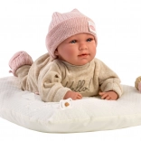 Oplev en realistisk baby fra LLorens med lydeffekter og blød stofkrop, ideel til rolleleg og at udvikle fantasien. Når man trykker på brystet, siger den “mama”, “papa” og udsender autentisk gråd. Dukken er poserbar, kan sidde og er håndlavet i Spanien. Sut som tilbehør og batterier medfølger til leg med det samme.