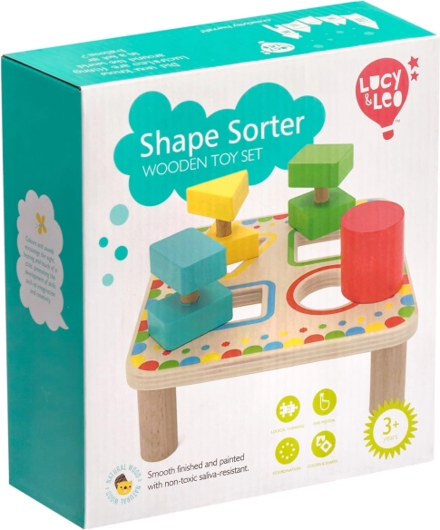 Det smarte træpuslespil fra Lucy & Leo udvikler logisk tænkning, finmotorik og tålmodighed. Indeholder 3 todelte elementer, som skal samles korrekt og drejes for at komme gennem hullerne i pladen, plus en cylinder. Farvemarkerede rammer guider børn til at genkende former og farver og gør opgaveløsningen sjov.