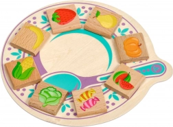 Børn lægger brikkerne på tallerkenen eller i kurven og tilegner sig naturligt vigtige indsigter om verden omkring sig. Ideelt til førskolebørn.