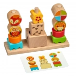 Sættet indeholder en solid træbase, varierede klodser i forskellige størrelser og 14 dobbeltsidede kort med udfordringer. Dyreklodserne har motiver i version “dag” og “nat”, hvilket giver legen en fortællende dimension. Efter legen kan alt nemt lægges i den linnedpose, der følger med.
