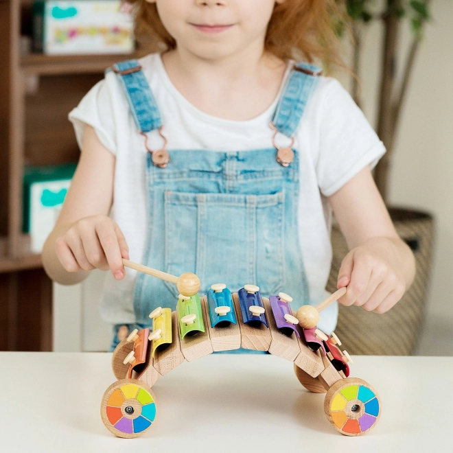 Regnbuefarvet trækxylofon på hjul LUCY & LEO