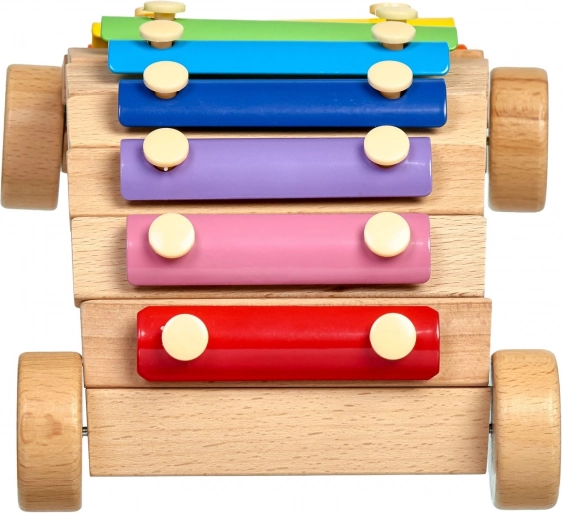 Træchassiset med hjul gør det muligt at trække eller skubbe xylofonen, så musiklæring bliver endnu sjovere.