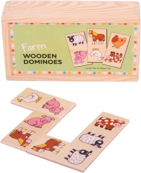 Oplev charmen ved et klassisk spil i en moderne udgave. Trædomino – gård er designet, så børn nemt kan greb om og stable brikkerne. De glade illustrationer af gårddyr understøtter læring gennem leg og motiverer til gentagen leg.